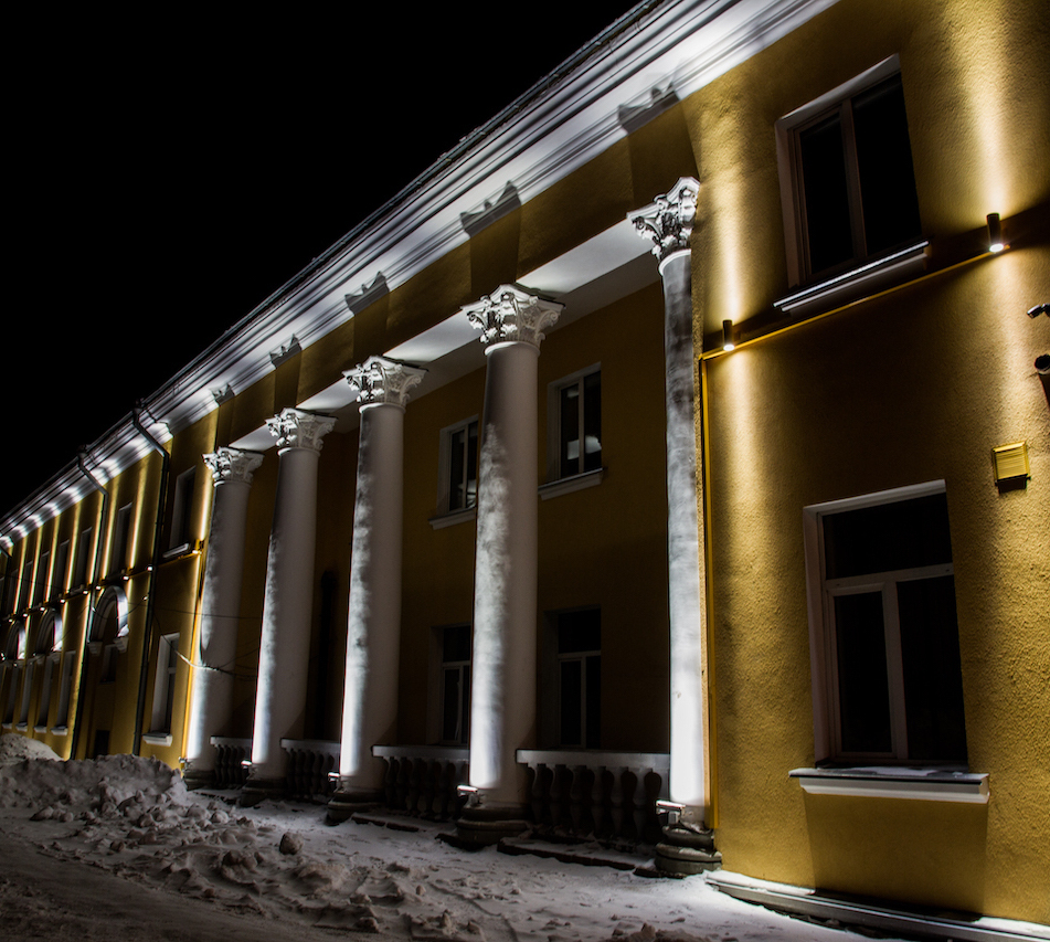 Специалисты компании выполнили эскизный и рабочий проект освещения фасада, а так же осуществили поставку оборудования с услугами шеф-монтажа.