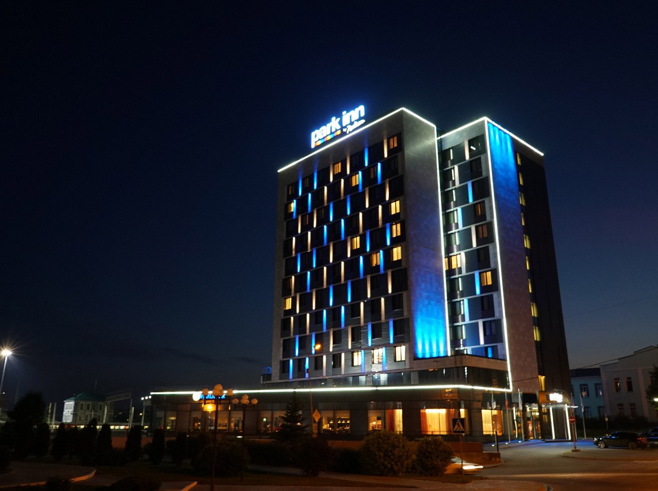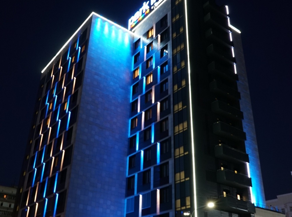 Специалисты компании "Бизнес Свет" выполнили работы по комплексному ремонту архитектурного освещения отеля Park Inn.